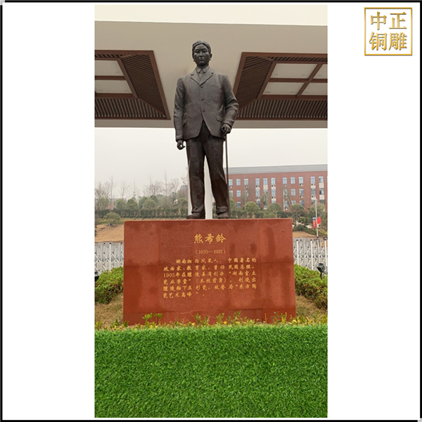 湖南工業(yè)大學(xué)陶瓷學(xué)院門前的這尊高3.8米的熊希齡人物銅雕塑,是由河北中正銅工藝品制作有限公司制作而成,這尊熊希齡人物銅雕塑高3.8米,底座高2米,總高5.8米。從最初圖紙?jiān)O(shè)計(jì)到安裝完成,總共歷時2個月時間,安裝完成后得到了院長和眾多老師的一致好評。