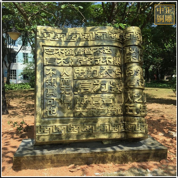 中正銅雕-校園書(shū)本銅雕塑鑄造、校園書(shū)本銅雕塑鑄造價(jià)格、校園書(shū)本銅雕塑鑄造廠家,我公司實(shí)行現(xiàn)代化企業(yè)管理,成功導(dǎo)入TPS生產(chǎn)管理系統(tǒng),形成集塑制泥塑模型、泥稿后翻制模具、翻制石膏模型、工藝師加工制作、營(yíng)銷為一體化作業(yè)的生產(chǎn)線,加上先進(jìn)的銅雕加工設(shè)備,優(yōu)秀的美術(shù)設(shè)計(jì)師,雕刻經(jīng)驗(yàn)豐富的制作人員。
